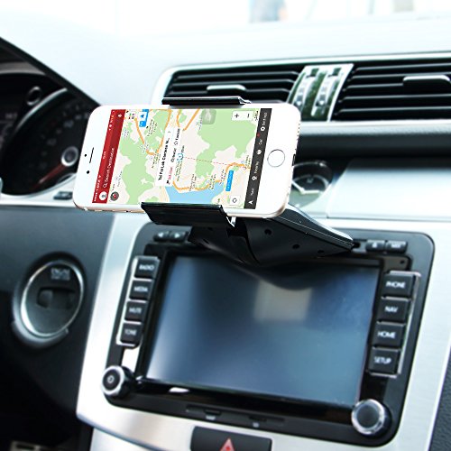 SGRICE 360° Universal CD-Slot Smartphone Mount is ergonomically designed to install easily and quickly and is a great tool that works with most smartphone Fits into the compact disc slot of your car without any tools or mechanism. Designed with rubber grip, the holder will securely hold your device without scratches or damages and fully adjustable. The mount has a fully rotatable holster hat twists and turns so you can view your device vertically or horizontally.